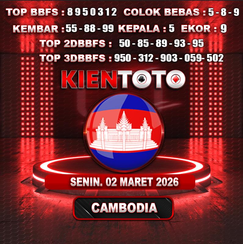 PREDIKSI TOGEL CAMBODIA 02 MARET 2026 Selamat Datang dan Selamat Bergabung di Situs Prediksi Togel Online. Permainan Togel Online saat ini telah menarik banyak perhatian para bettor di Indonesia. Jika dulunya Anda harus menikmati permainan togel melalui bandar togel darat, maka sekarang ini Anda hanya perlu mempercayakan KIENTOTO sebagai Bandar Togel Online Resmi dan Terpercaya. Melihat semakin tingginya minat para pecinta togel online, kami menyediakan Situs Prediksi Togel Online dan Bocoran Togel Jitu yang bisa Anda jadikan sebagai acuan sebelum melakukan pemasangan angka togel.