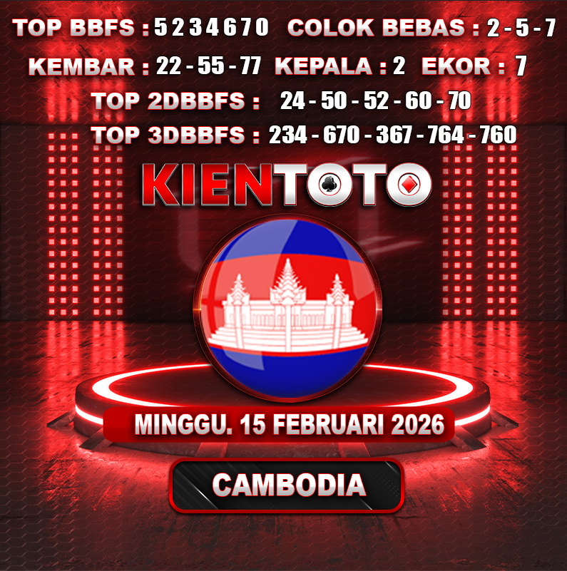 PREDIKSI TOGEL CAMBODIA 15 FEBRUARI 2026 Selamat Datang dan Selamat Bergabung di Situs Prediksi Togel Online. Permainan Togel Online saat ini telah menarik banyak perhatian para bettor di Indonesia. Jika dulunya Anda harus menikmati permainan togel melalui bandar togel darat, maka sekarang ini Anda hanya perlu mempercayakan KIENTOTO sebagai Bandar Togel Online Resmi dan Terpercaya. Melihat semakin tingginya minat para pecinta togel online, kami menyediakan Situs Prediksi Togel Online dan Bocoran Togel Jitu yang bisa Anda jadikan sebagai acuan sebelum melakukan pemasangan angka togel.
