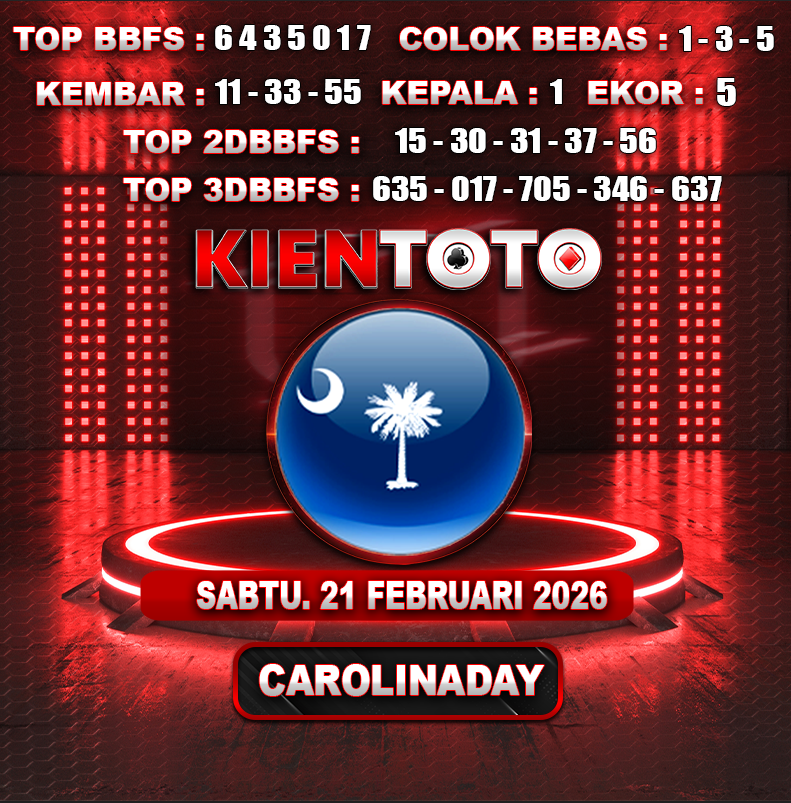 PREDIKSI TOGEL CAROLINA DAY 21 FEBRUARI 2026 Selamat Datang dan Selamat Bergabung di Situs Prediksi Togel Online. Permainan Togel Online saat ini telah menarik banyak perhatian para bettor di Indonesia. Jika dulunya Anda harus menikmati permainan togel melalui bandar togel darat, maka sekarang ini Anda hanya perlu mempercayakan KIENTOTO sebagai Bandar Togel Online Resmi dan Terpercaya. Melihat semakin tingginya minat para pecinta togel online, kami menyediakan Situs Prediksi Togel Online dan Bocoran Togel Jitu yang bisa Anda jadikan sebagai acuan sebelum melakukan pemasangan angka togel.