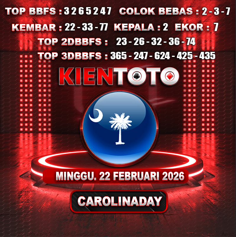 PREDIKSI TOGEL CAROLINA DAY 22 FEBRUARI 2026 Selamat Datang dan Selamat Bergabung di Situs Prediksi Togel Online. Permainan Togel Online saat ini telah menarik banyak perhatian para bettor di Indonesia. Jika dulunya Anda harus menikmati permainan togel melalui bandar togel darat, maka sekarang ini Anda hanya perlu mempercayakan KIENTOTO sebagai Bandar Togel Online Resmi dan Terpercaya. Melihat semakin tingginya minat para pecinta togel online, kami menyediakan Situs Prediksi Togel Online dan Bocoran Togel Jitu yang bisa Anda jadikan sebagai acuan sebelum melakukan pemasangan angka togel.