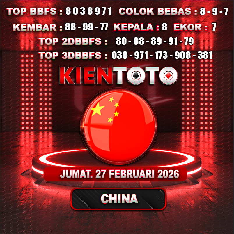 PREDIKSI TOGEL CHINA 27 FEBRUARI 2026 Selamat Datang dan Selamat Bergabung di Situs Prediksi Togel Online. Permainan Togel Online saat ini telah menarik banyak perhatian para bettor di Indonesia. Jika dulunya Anda harus menikmati permainan togel melalui bandar togel darat, maka sekarang ini Anda hanya perlu mempercayakan KIENTOTO sebagai Bandar Togel Online Resmi dan Terpercaya. Melihat semakin tingginya minat para pecinta togel online, kami menyediakan Situs Prediksi Togel Online dan Bocoran Togel Jitu yang bisa Anda jadikan sebagai acuan sebelum melakukan pemasangan angka togel.