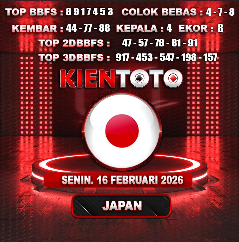 PREDIKSI TOGEL JAPAN 16 EBRUARI 2026 Selamat Datang dan Selamat Bergabung di Situs Prediksi Togel Online. Permainan Togel Online saat ini telah menarik banyak perhatian para bettor di Indonesia. Jika dulunya Anda harus menikmati permainan togel melalui bandar togel darat, maka sekarang ini Anda hanya perlu mempercayakan KIENTOTO sebagai Bandar Togel Online Resmi dan Terpercaya. Melihat semakin tingginya minat para pecinta togel online, kami menyediakan Situs Prediksi Togel Online dan Bocoran Togel Jitu yang bisa Anda jadikan sebagai acuan sebelum melakukan pemasangan angka togel.