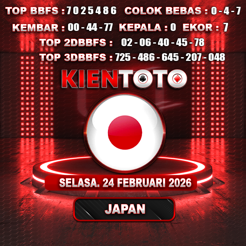 PREDIKSI TOGEL JAPAN 24 EBRUARI 2026 Selamat Datang dan Selamat Bergabung di Situs Prediksi Togel Online. Permainan Togel Online saat ini telah menarik banyak perhatian para bettor di Indonesia. Jika dulunya Anda harus menikmati permainan togel melalui bandar togel darat, maka sekarang ini Anda hanya perlu mempercayakan KIENTOTO sebagai Bandar Togel Online Resmi dan Terpercaya. Melihat semakin tingginya minat para pecinta togel online, kami menyediakan Situs Prediksi Togel Online dan Bocoran Togel Jitu yang bisa Anda jadikan sebagai acuan sebelum melakukan pemasangan angka togel.