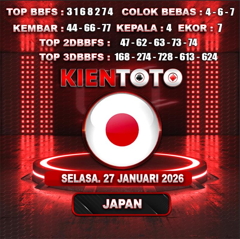 PREDIKSI TOGEL JAPAN 27 JANUARI 2026 Selamat Datang dan Selamat Bergabung di Situs Prediksi Togel Online. Permainan Togel Online saat ini telah menarik banyak perhatian para bettor di Indonesia. Jika dulunya Anda harus menikmati permainan togel melalui bandar togel darat, maka sekarang ini Anda hanya perlu mempercayakan KIENTOTO sebagai Bandar Togel Online Resmi dan Terpercaya. Melihat semakin tingginya minat para pecinta togel online, kami menyediakan Situs Prediksi Togel Online dan Bocoran Togel Jitu yang bisa Anda jadikan sebagai acuan sebelum melakukan pemasangan angka togel.