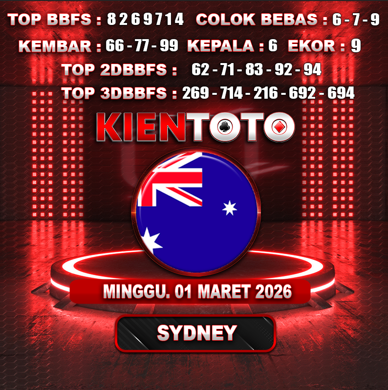 PREDIKSI TOGEL SYDNEY 01 MARET 2026 Selamat Datang dan Selamat Bergabung di Situs Prediksi Togel Online. Permainan Togel Online saat ini telah menarik banyak perhatian para bettor di Indonesia. Jika dulunya Anda harus menikmati permainan togel melalui bandar togel darat, maka sekarang ini Anda hanya perlu mempercayakan KIENTOTO sebagai Bandar Togel Online Resmi dan Terpercaya. Melihat semakin tingginya minat para pecinta togel online, kami menyediakan Situs Prediksi Togel Online dan Bocoran Togel Jitu yang bisa Anda jadikan sebagai acuan sebelum melakukan pemasangan angka togel.