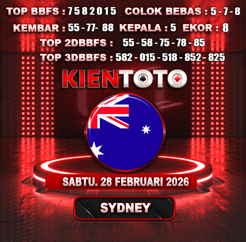 PREDIKSI TOGEL SYDNEY 28 FEBRUARI 2026 Selamat Datang dan Selamat Bergabung di Situs Prediksi Togel Online. Permainan Togel Online saat ini telah menarik banyak perhatian para bettor di Indonesia. Jika dulunya Anda harus menikmati permainan togel melalui bandar togel darat, maka sekarang ini Anda hanya perlu mempercayakan KIENTOTO sebagai Bandar Togel Online Resmi dan Terpercaya. Melihat semakin tingginya minat para pecinta togel online, kami menyediakan Situs Prediksi Togel Online dan Bocoran Togel Jitu yang bisa Anda jadikan sebagai acuan sebelum melakukan pemasangan angka togel.